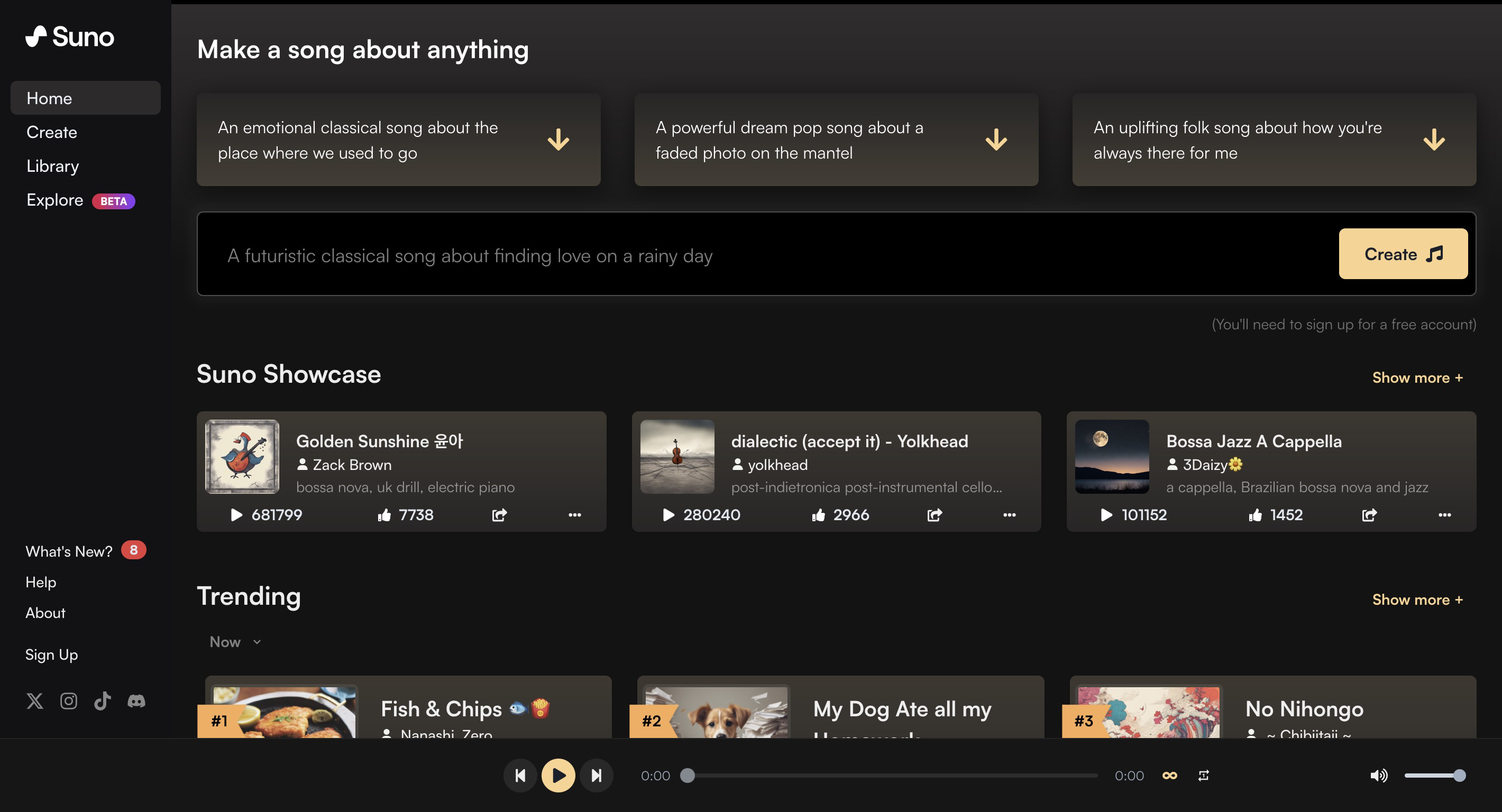 Discover, create, and share music with the world. Use the latest technology to create AI music in seconds.