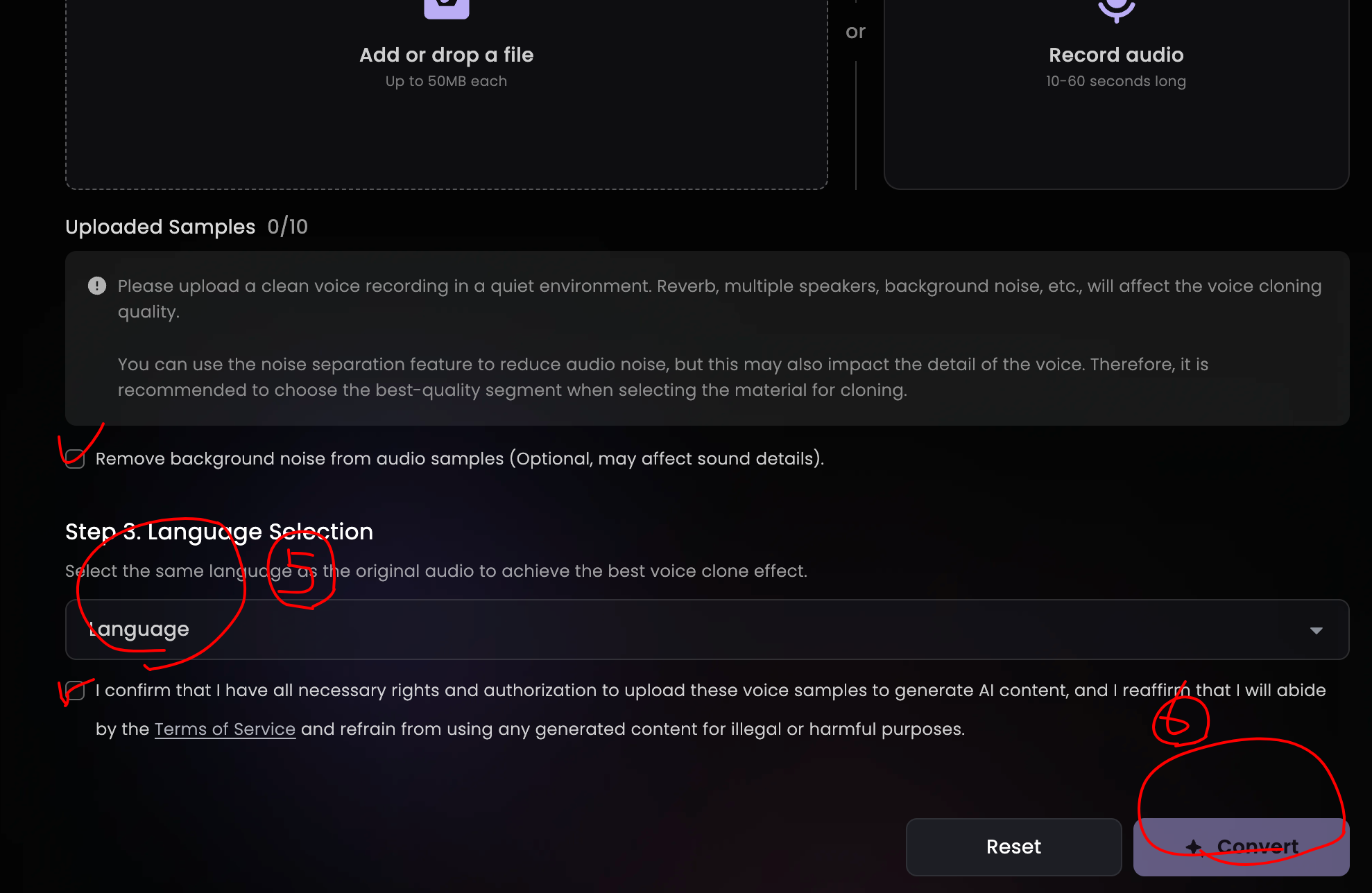 마지막 ⑥Convert를 누르면 내 목소리 복사 완성.