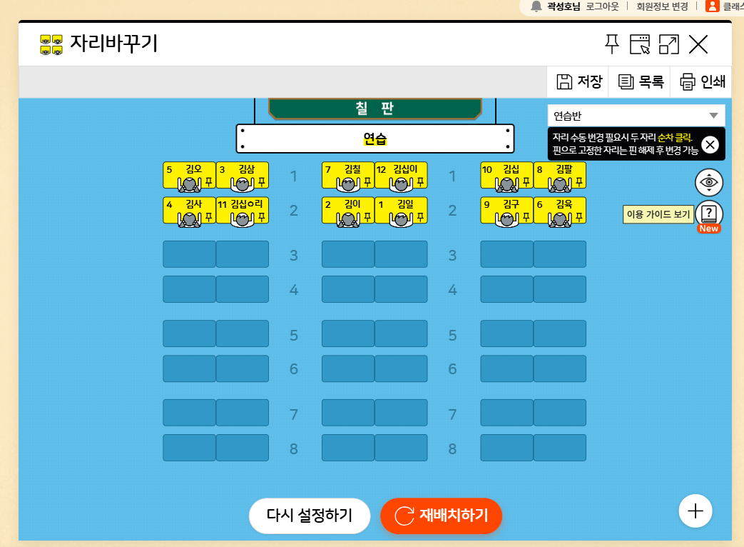- 자리배치 후에도 학생들의 학습 환경을 고려해 유연하게 자리를 바꿀 수 있습니다1.