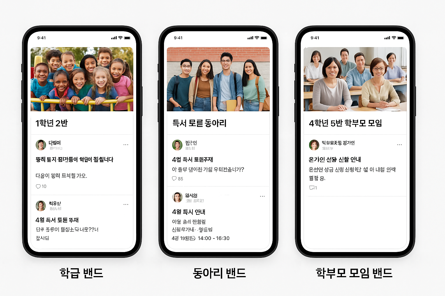 - 학교 컴퓨터에서도, 스마트폰에서도 언제 어디서나 동일하게 밴드를 사용할 수 있습니다.