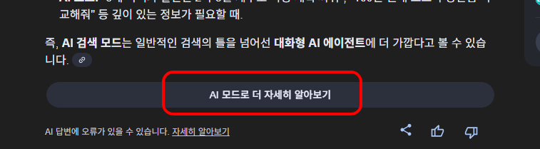 전체 AI 개요에서는 마지막에 AI 검색 모드 제안이 다시 나타납니다.