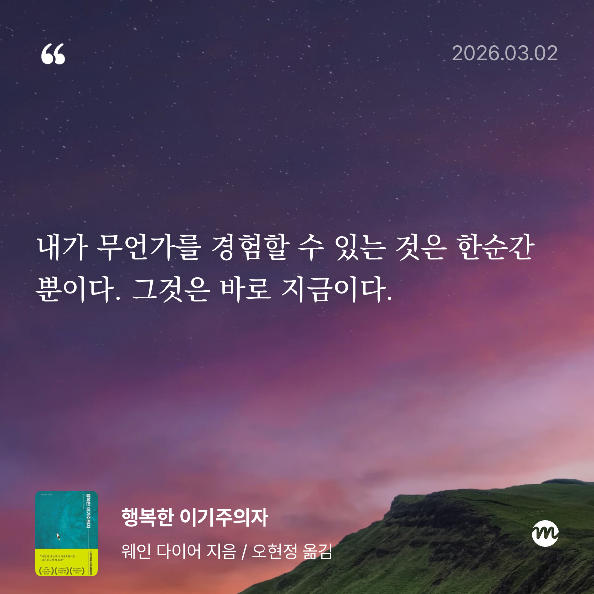 | 행복한 이기주의자, 웨인다이어(2026. 3. 23.) (0) | 2026.03.23 |
